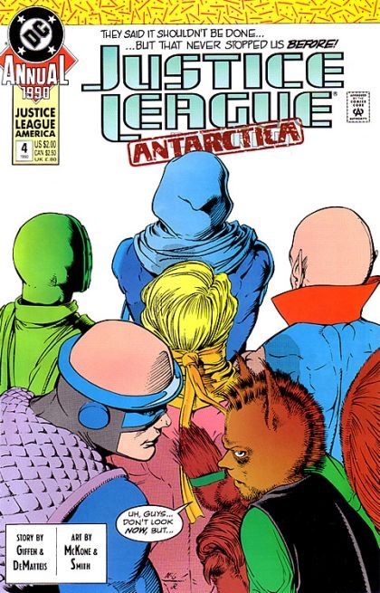 Justice League / International / America Annual What's Black and White and Black and White and... | Issue#4A | Year:1990 | Series: JLA | Pub: DC Comics | Direct Edition